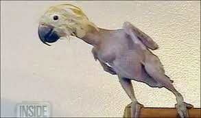 Sinds zijn oude bazin was overleden en hij uit intens verdriet al zijn veren uit getrokken had was hij verhuisd naar een koude woning in de achterbuurten van Amsterdam. Daar had hij 1 nacht gewoond en werd weg gebracht naar de dierenwinkel waar hij 1 week had gewoond. Tijdens zijn verblijf in de dierenwinkel werd hij meerdere malen uitgelachen en men verweet hem allerlei ziekten die hij niet eens bij naam kende.